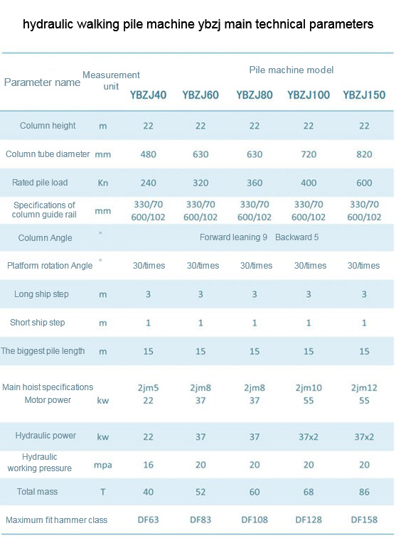 YBZJ Series Hydraulic Walking Pile Machine is a kind of foundation construction equipment planting village depending on the use of ship-shaped track walking, with good stability, complete functions and other characteristics. According to the construction requirements can be equipped with guide rod diesel hammer, cylinder diesel hammer, vibration hammer, hydraulic hammer, long spiral drilling rig and other working equipment. It is widely used, reliable in performance and easy to move.